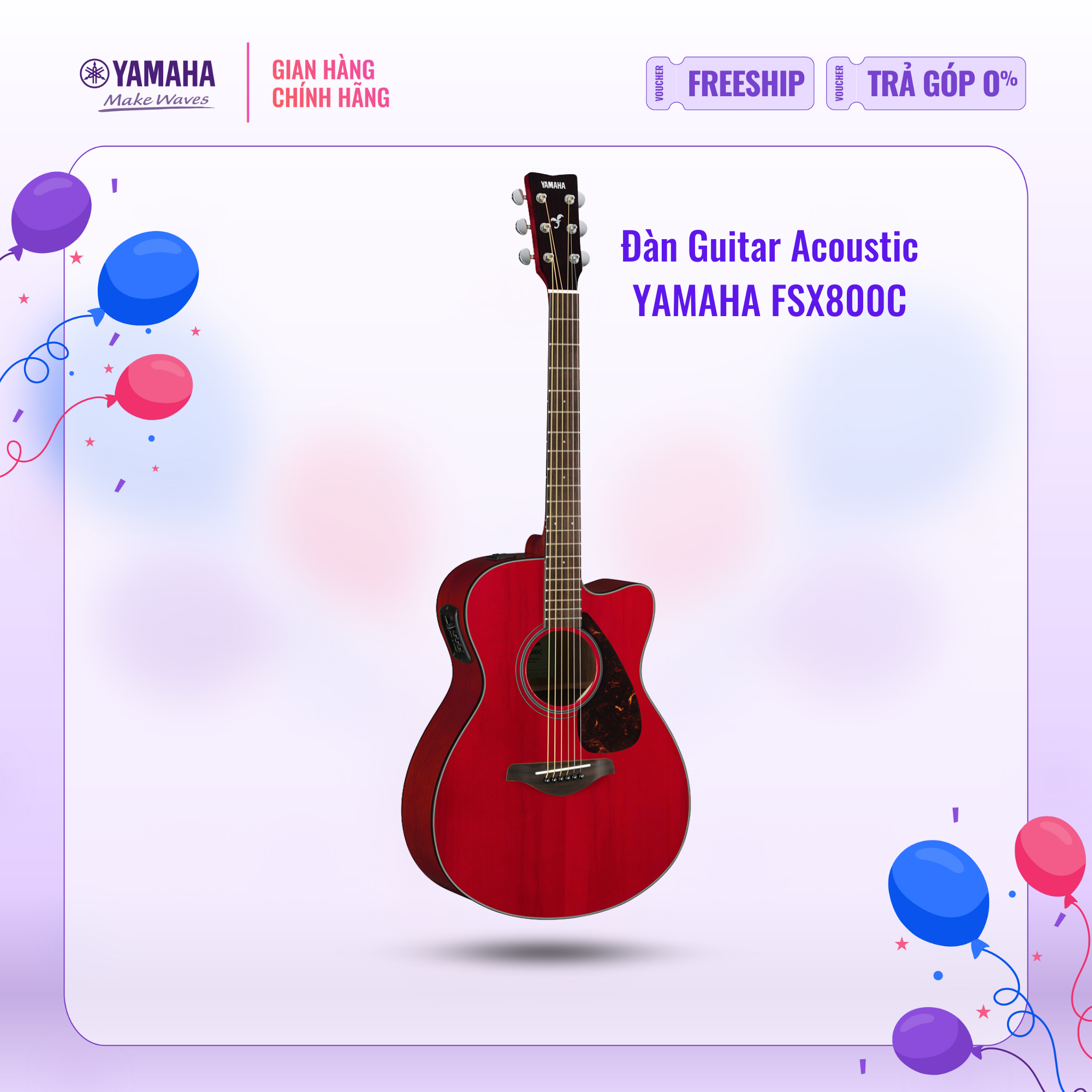 Sự lựa chọn đầu tiên trong việc trải nghiệm âm nhạc acoustic-electric. Xuất thân từ đàn guitar FS800 có thiết kế mặt đàn bằng gỗ vẫn sam nguyên tâm với mặt sao và cạnh đàn làm từ gỗ hồng đào/gỗ okume, đàn guitar FSX800C sở hữu phần thân cutaway và hệ thống nối điện. Với hệ thống Pickup UnderSaddle có thanh Piezo độc quyền từ Yamaha và System66 preamp tương thích để hệ thống kết nối được đảm bảo xuyên suốt màn trình diễn.
