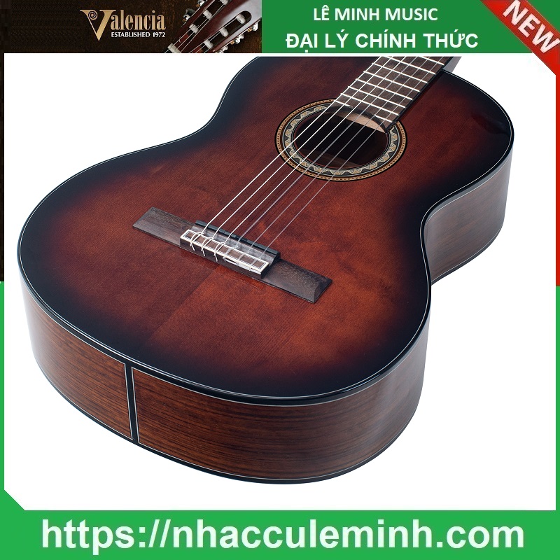 Valencia Series 560 nổi bật trong phân khúc với lớp phủ có độ bóng cao . Hông và lưng làm bằng gỗ Walnut một sự kết hợp tông màu tuyệt đẹp giúp tăng cường độ phong phú và duy trì tần số thấp. Với cần đàn làm bằng gỗ Gụ tuyệt đẹp, bàn phím bằng gỗ Mun, mặt đàn được làm bằng gỗ thông sitka cho màu vàng trắng sang trọng ,khóa đàn màu vàng chất lượng cao, cây đàn này sẵn sàng cho hiệu suất đáng tin cậy trong nhiều năm.