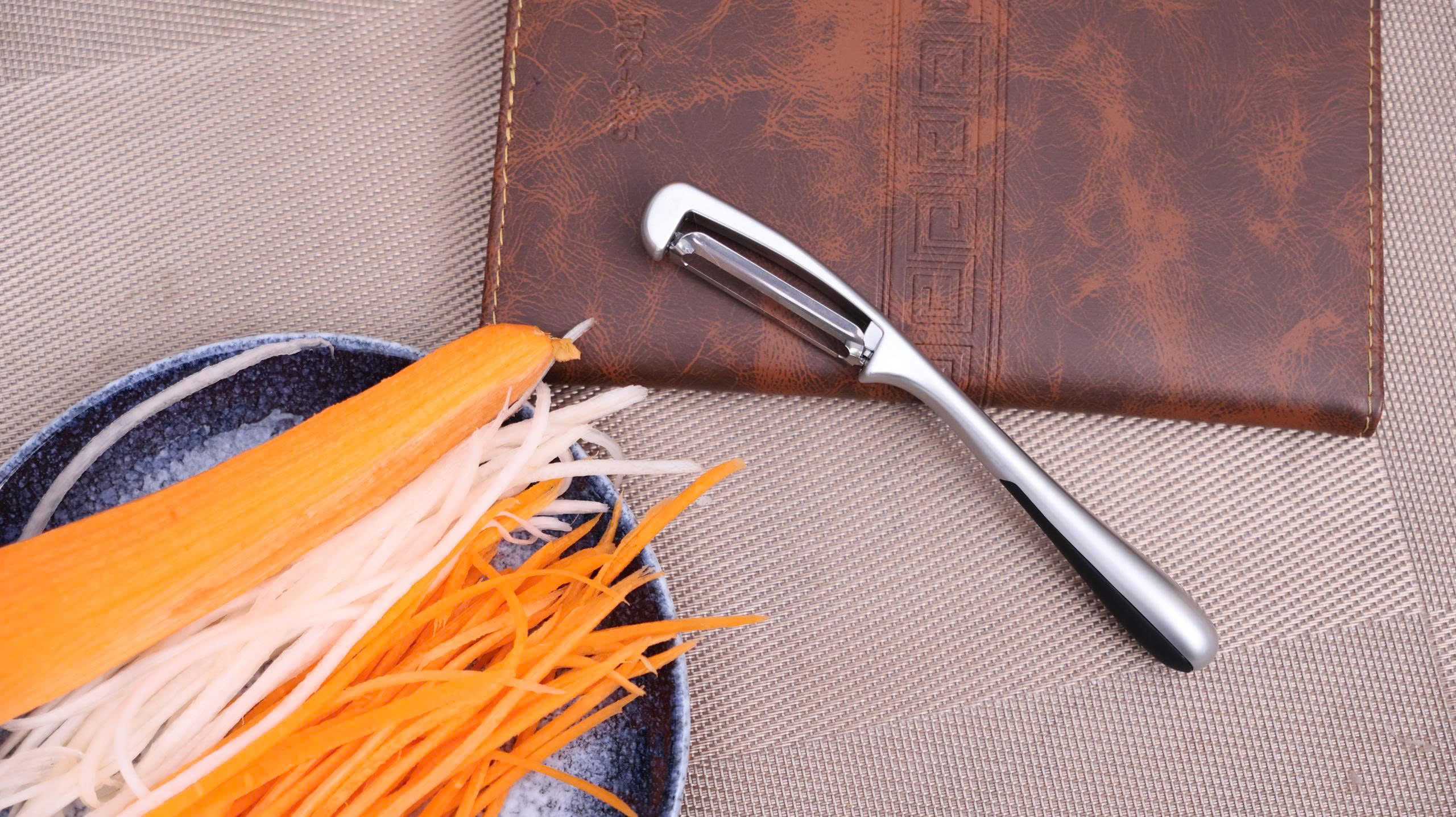 Nâng cao quá trình chuẩn bị lột da của bạn. Dụng cụ gọt vỏ nhiều lưỡi, hai trong một của chúng tôi cung cấp cả lưỡi thẳng và lưỡi Julienne mà bạn chỉ cần chọn