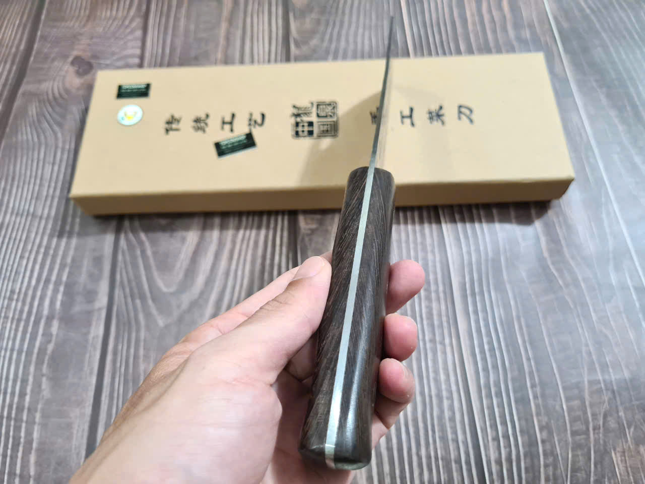 • Chất liệu: Thép Nhật 420J2, độ cứng 53HRC – siêu bền, chống gỉ • Lưỡi dao: Dày 2.5mm, sắc bén, hoàn thiện bằng đá mài nước • Tay cầm: Gỗ Pakka sang trọng, chống