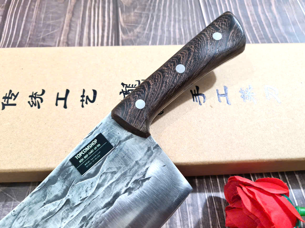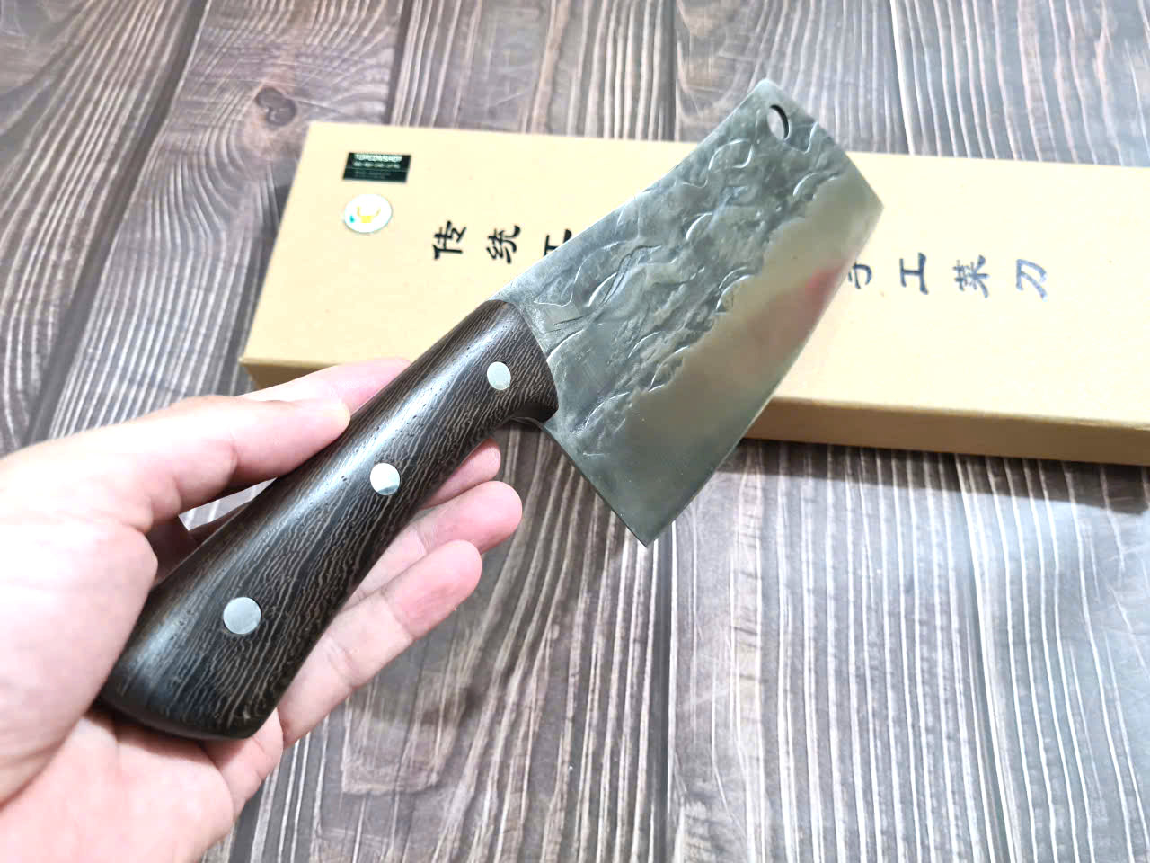 TỔNG DÀI : 30cm, LƯỠI: 17.5cm,RỘNG : 7cm, dày: 2.5mm, CHẤT liệu lưỡi: 5Cr15MOV (thép 5 crom 15 molypden vanadi) Chất liệu CÁN: gỗ Cánh gà, NẶNG : 3 lạng