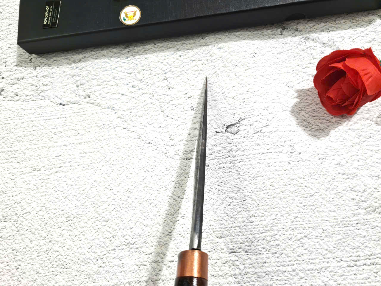 • Chất liệu: Thép Nhật 420J2, độ cứng 53HRC – siêu bền, chống gỉ • Lưỡi dao: Dày 2.5mm, sắc bén, hoàn thiện bằng đá mài nước • Tay cầm: Gỗ Pakka sang trọng, chống