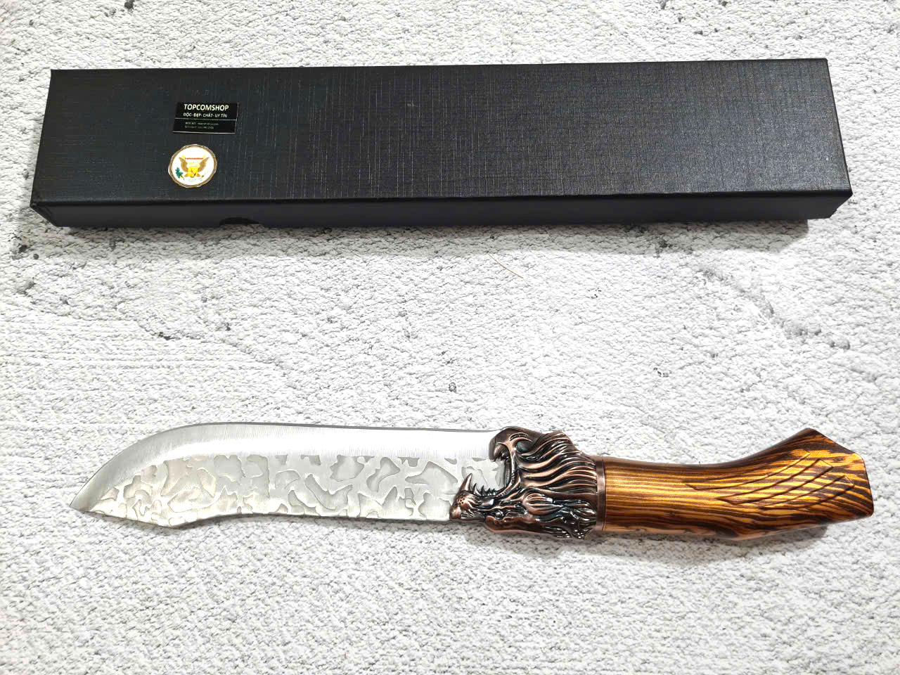 • Chất liệu: Thép Nhật 420J2, độ cứng 53HRC – siêu bền, chống gỉ • Lưỡi dao: Dày 2.5mm, sắc bén, hoàn thiện bằng đá mài nước • Tay cầm: Gỗ Pakka sang trọng, chống