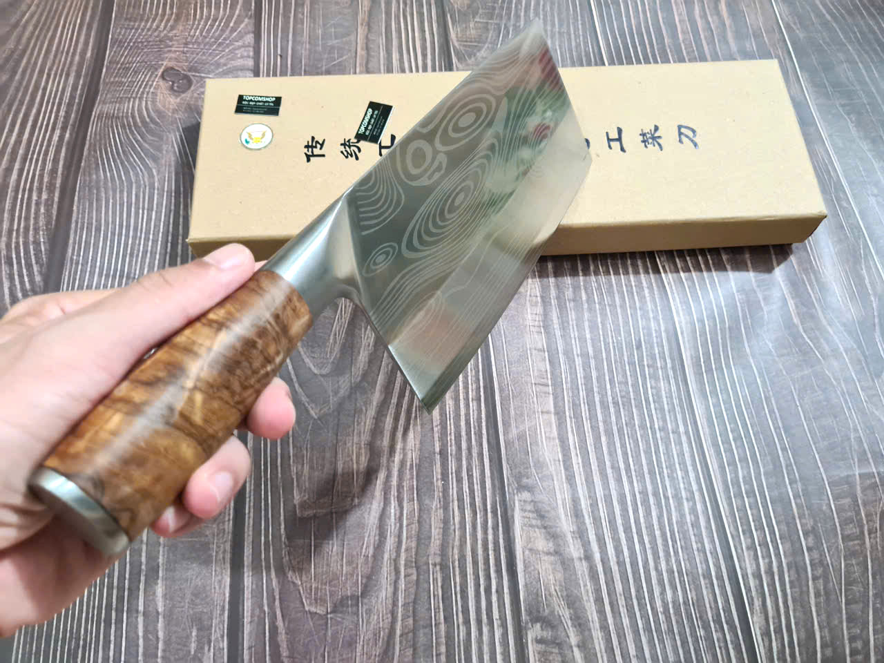 - Chức năng: chuyên chặt thái cá, chặt gà, lọ - Kích thước: Lưỡi: 26cm, cán: 12,5cm, rộng: 6,5cm, dầy: 4ly, trọng lượng: 480g - Cán : Gỗ mun , Khâu và chốt đồng đỏ