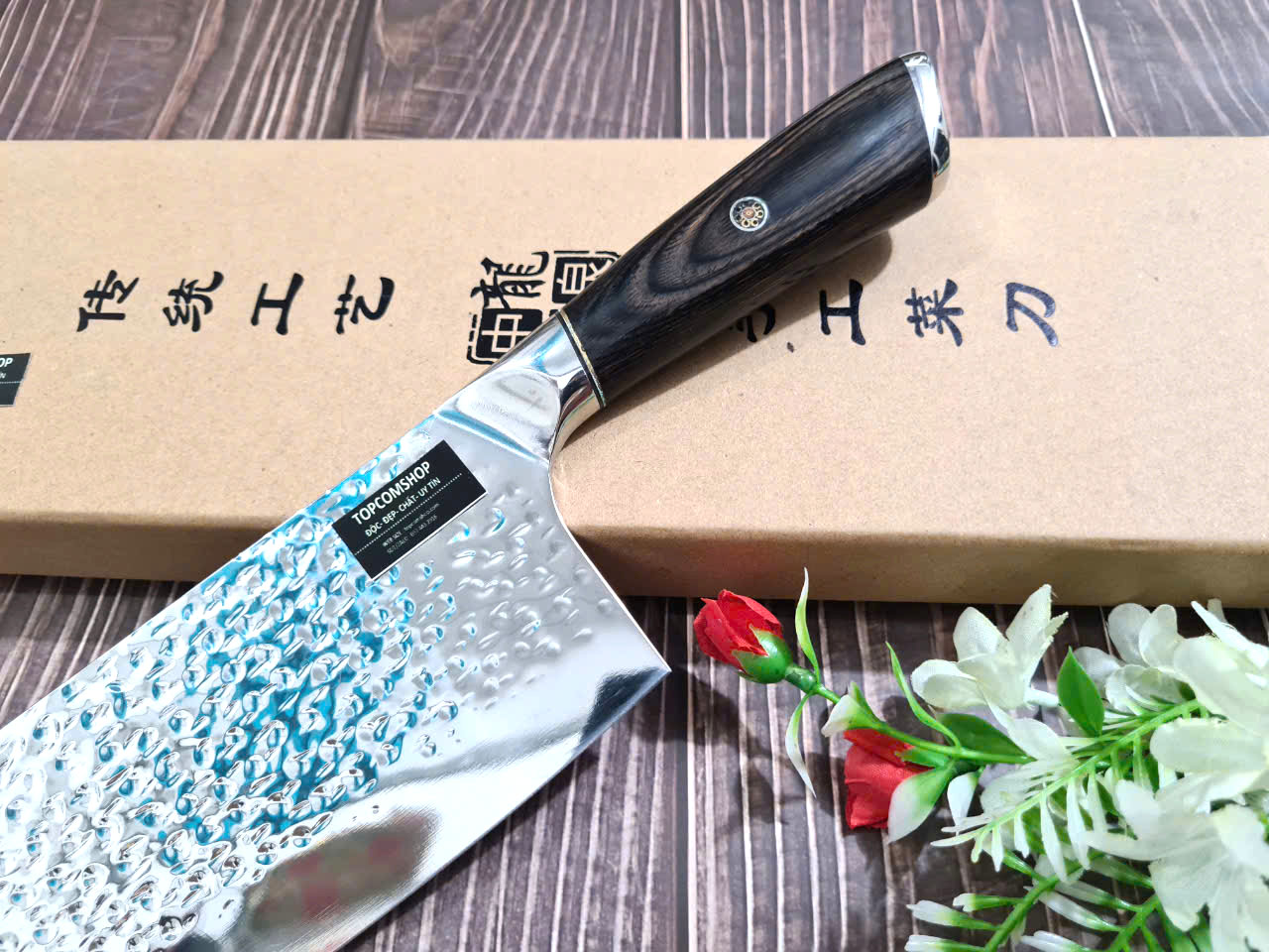 Tên sản phẩm: Dao Phúc Sen, Dao Thái Kiểu 03 Cán Gỗ Cẩm - Chức năng: chuyên thái thịt, rau củ - Chất liệu: 100% thép nhíp ô tô được lựa chọn và kiểm duyệt