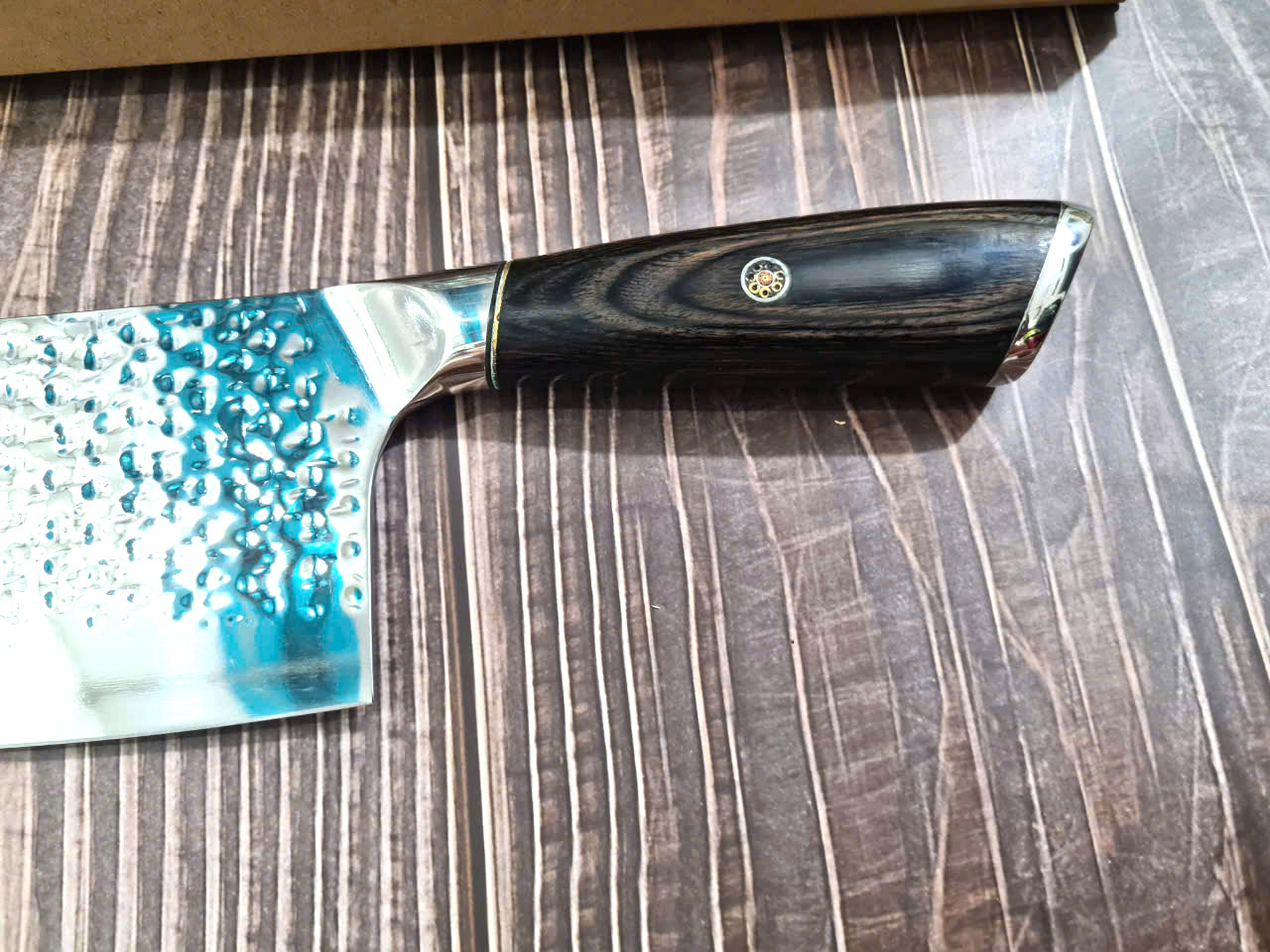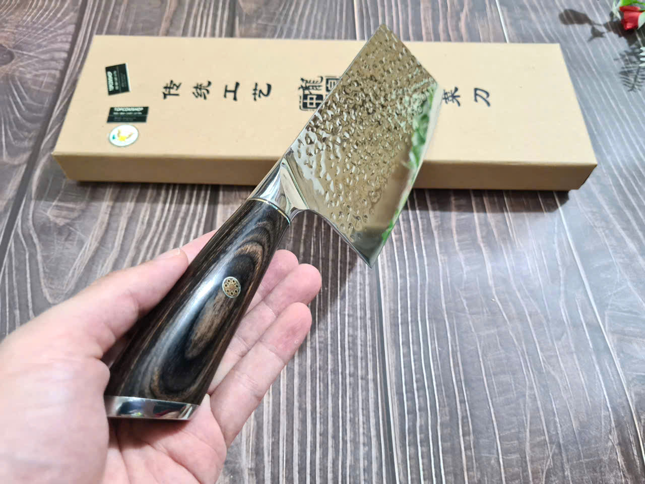 - Cán được làm bằng gỗ Pakka có vẻ ngoài thanh lịch, Lưỡi Được làm từ chất liệu thép 7Cr17 cao cấp giúp D có độ sắc rất lâu, rất ýt khi phải mài.