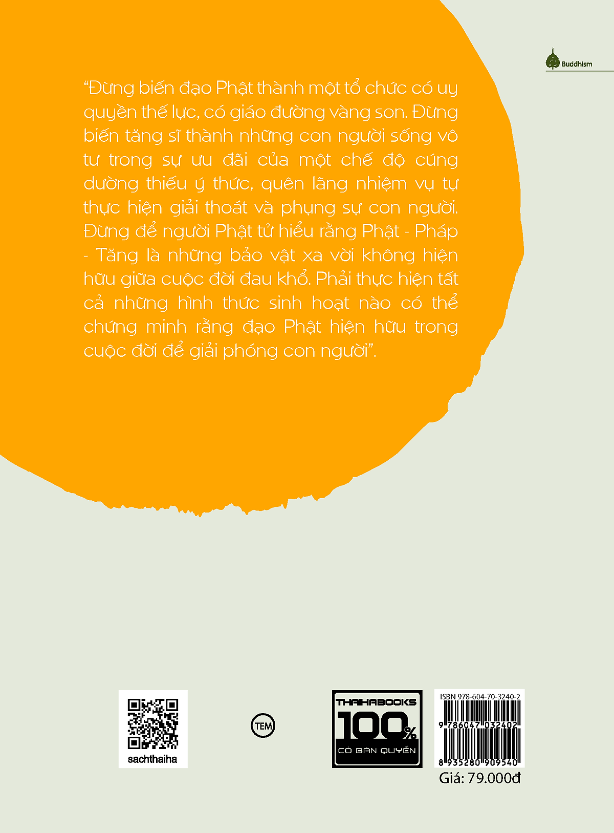 THÔNG TIN XUẤT BẢN Tên tác phẩm: Phật Đạo: Pháp môn trong Phật pháp Tên tác giả: Vân Sơn Thượng - Nguyễn Văn Quỳ Thương hiệu: Mochibooks Khổ sách: 15.5 x 24 cm Số trang: