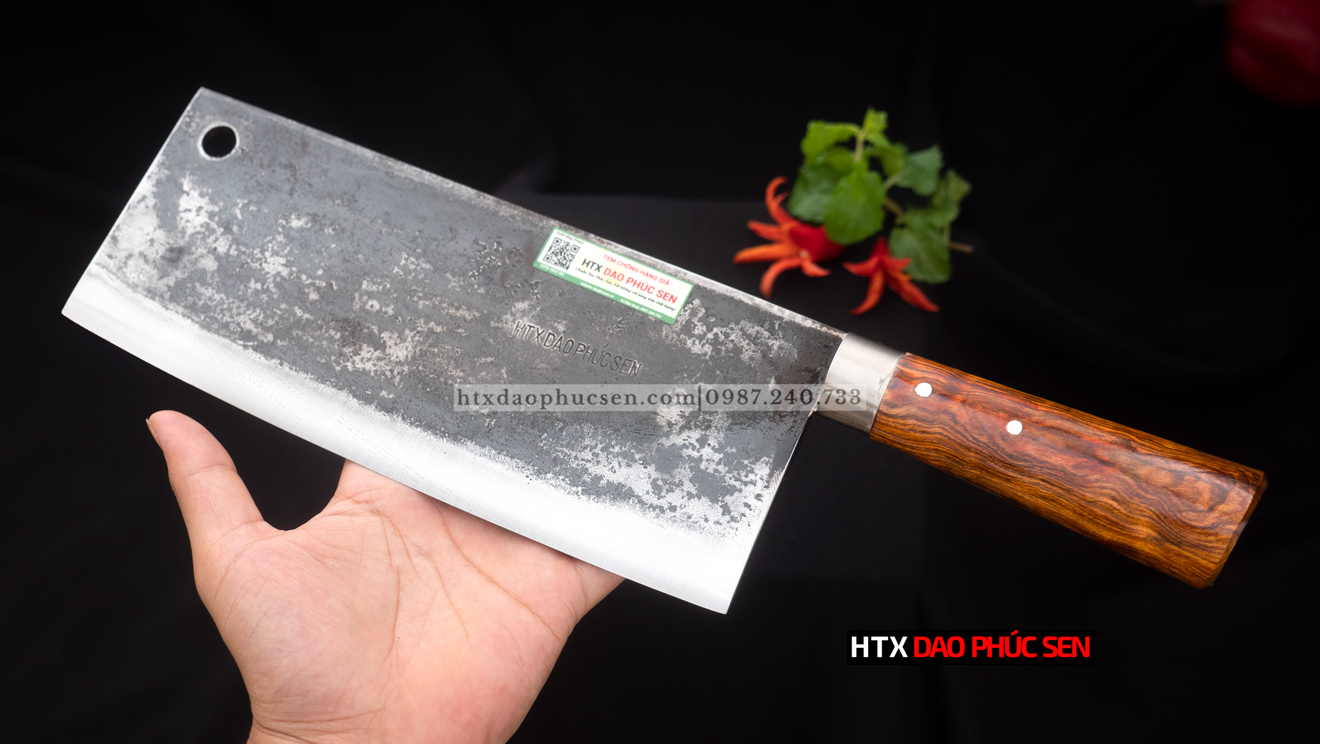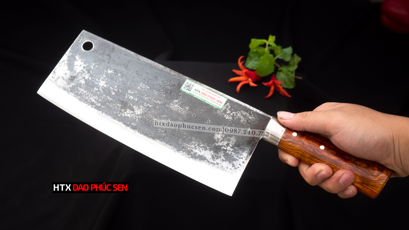 Dao Phúc Sen - Dao chặt xương 5ly - Chất liệu: 100% thép nhíp ô tô được lựa chọn và kiểm duyệt kỹ càng. - Chất liệu cán: gỗ cẩm chỉ núi - Kích thước: