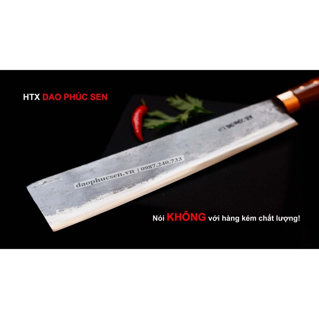 Dao Phúc Sen - Dao chặt xương 5ly - Chất liệu: 100% thép nhíp ô tô được lựa chọn và kiểm duyệt kỹ càng. - Chất liệu cán: gỗ cẩm chỉ núi - Kích thước: