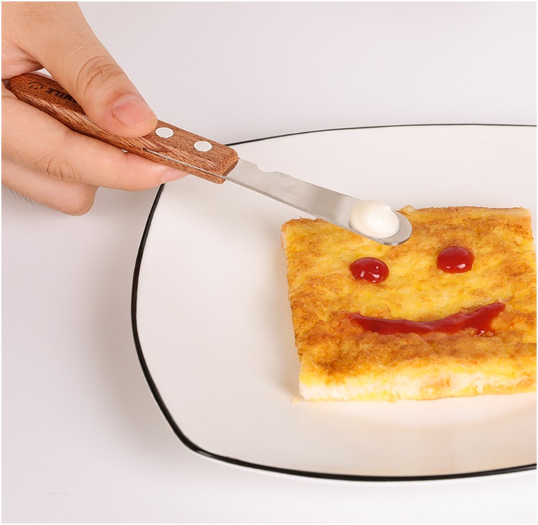 Chất liệu inox khó gỉ sét. Cán gỗ chắc chắn, dễ dàng trét kem làm bánh.
