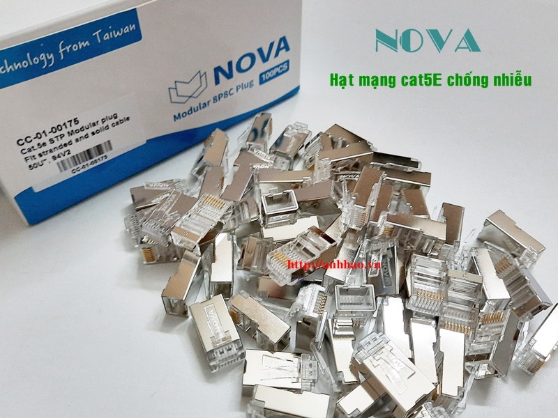 Hạt mạng RJ45 cat5 chống nhiễu Nova CC-01-00175 chân tiếp xúc mạ vàng 50U cao cấp Đầu bấm mạng RJ45 Cat5 chống nhiễu Nova chính hãng là dòng sản phẩm cao cấp do công ty