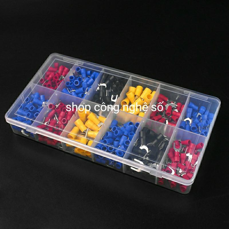 Đầu cos dây điện tròn có phủ nhựa-1250 đầu cos đựng trong hộp nhựa tiện dụng Hộp 1250 đầu cos đủ loại bao gồm: