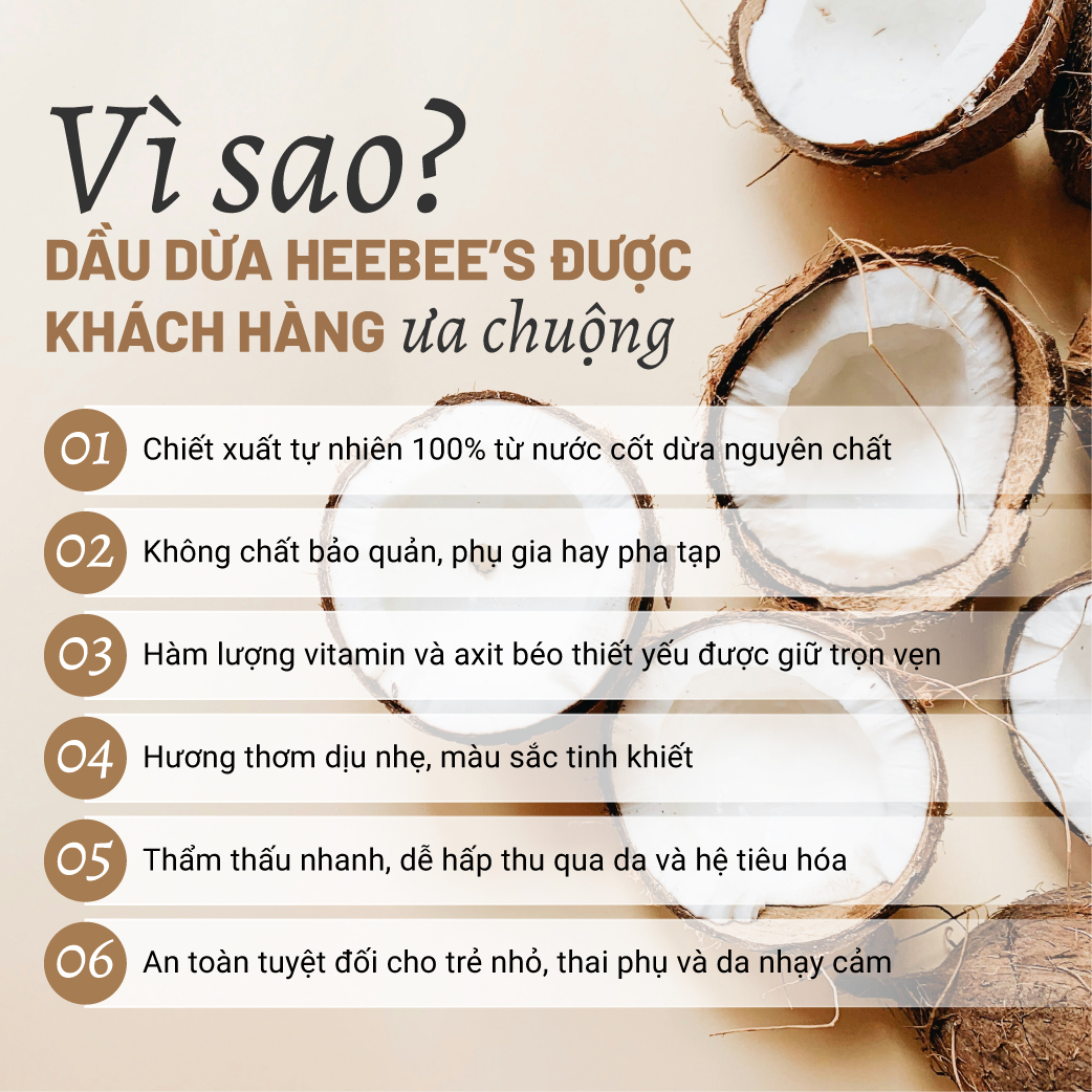 DẦU DỪA TINH KHIẾT HEEBEE'S 100% TỪ DỪA TƯƠI NGUYÊN CHẤT ÉP LẠNH, KHÔNG MÙI, CÔNG DỤNG ĐA NĂNG 50/150ML