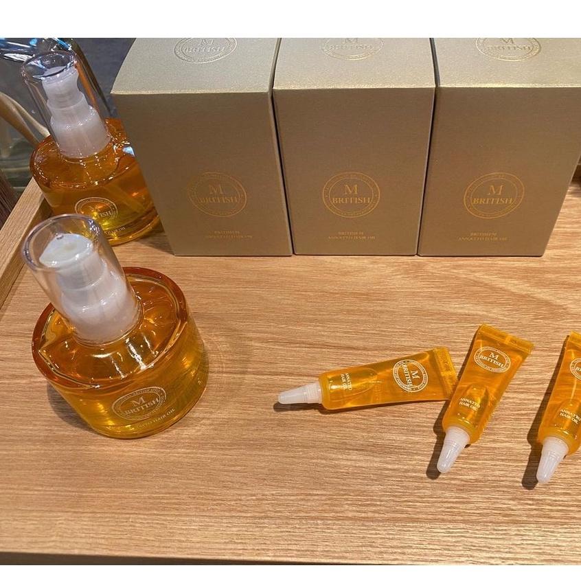 Dầu dưỡng phục hồi tóc hư tổn, khô, sơ, chẻ ngọn, gãy rụng tóc cho nam nữ BRITISH M Annatto Hair Oil