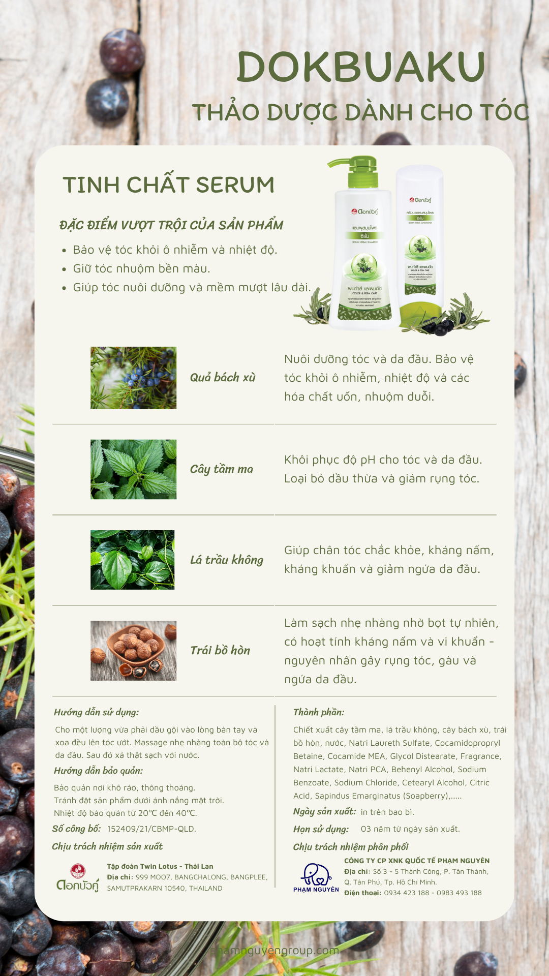 QUY CÁCH: DẦU GỘI 350G + DẦU XẢ 200G DẦU GỘI THANH MỘC HƯƠNG Thành phần trong dầu gội thảo dược giảm rụng tóc, nhanh mọc tóc, giảm gàu Thanh Mộc Hương: Dịch chiết bồ