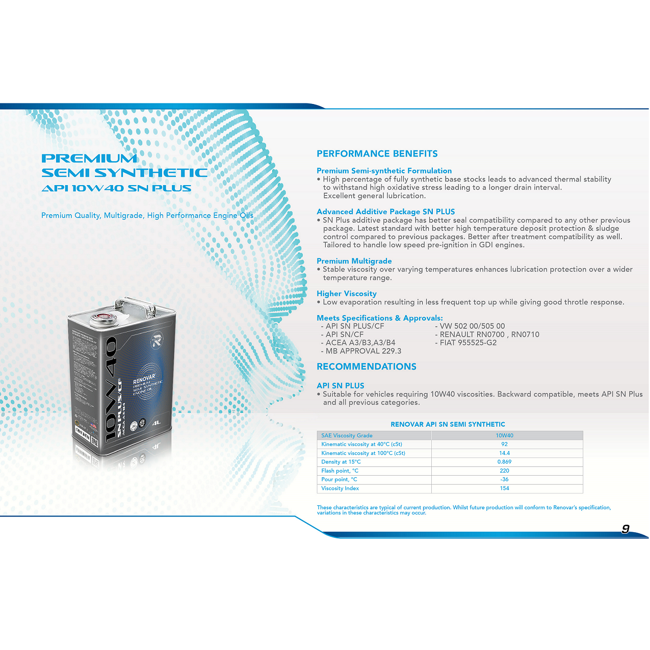 Engi Turbo+ G5  là dầu động cơ  bán tổng hợp với công nghệ Cool-Syn được thiết kế đặc biệt cho xe du lịch / xe tải nhẹ với bộ chế hòa khí hoặc phun xăng trực