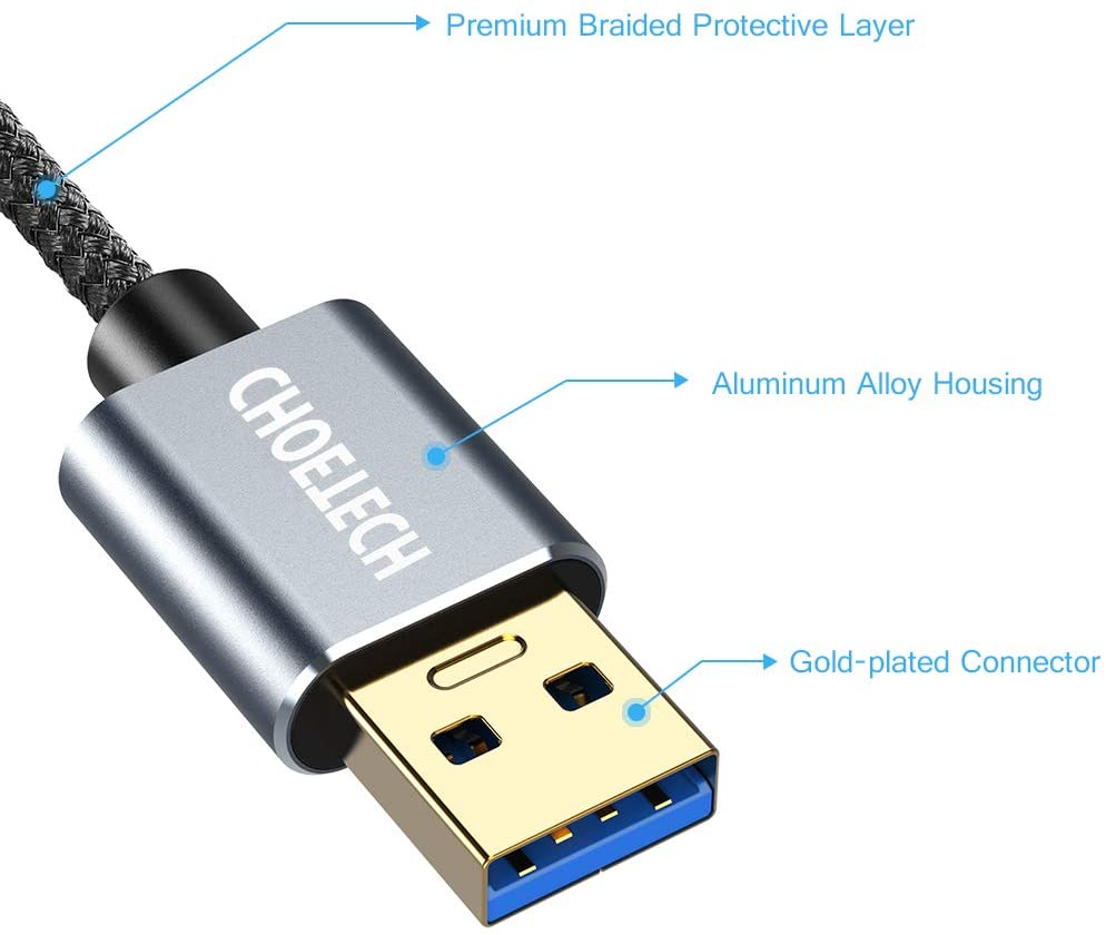 Độ bền cao: Cáp CHOETECH USB 3.0 được thiết kế với chất liệu tốt cho độ bền cao, Sự kết hợp của các đầu nối mạ vàng, dây dẫn bằng đồng trần, lớp bảo vệ bằng giấy bạc & bện mang lại hiệu suất cao hơn cho cáp USB 3.0, truyền dữ liệu không bị lỗi và tốc độ sạc nhanh.