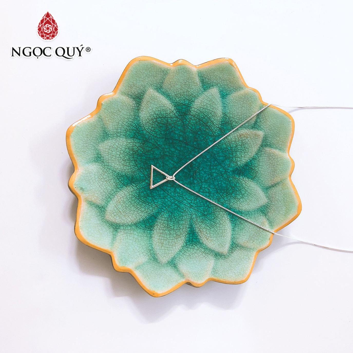 Dây chuyền bạc mặt tam giác làm bằng bạc chất lượng cao .Để làm mới sản phẩm dùng lâu ngày, chỉ cần dùng xà phòng hoặc ngâm trong nước kem đánh răng sẽ đẹp lại như mới ( bạc xi hoặc bạc không đạt chất lượng thì sẽ ko có tính chất này )