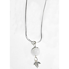Dây Chuyền Mặt Đá Thạch Anh Ưu Linh Trắng Phối 3 Lá Bạc