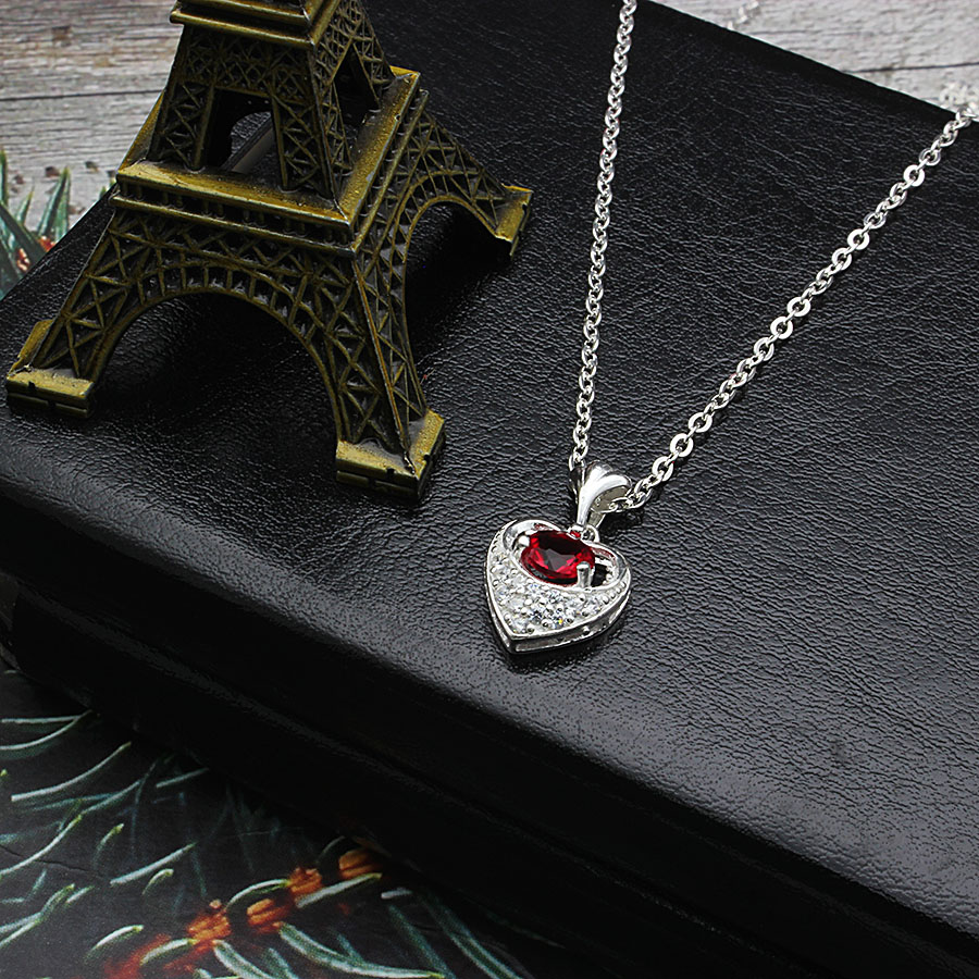 ✨Dây Chuyền Nữ Hình Trái Tim Đá Đỏ BẠC HIỂU MINH DMD408R