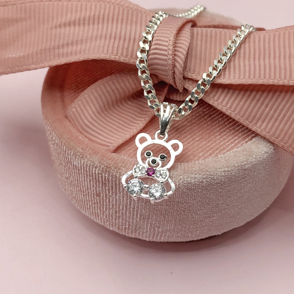 Dây Chuyền Trẻ Em Bạc 925 Hình Mặt Gấu Dễ Thương Chính Hãng Bạc Hiểu Minh DTE063