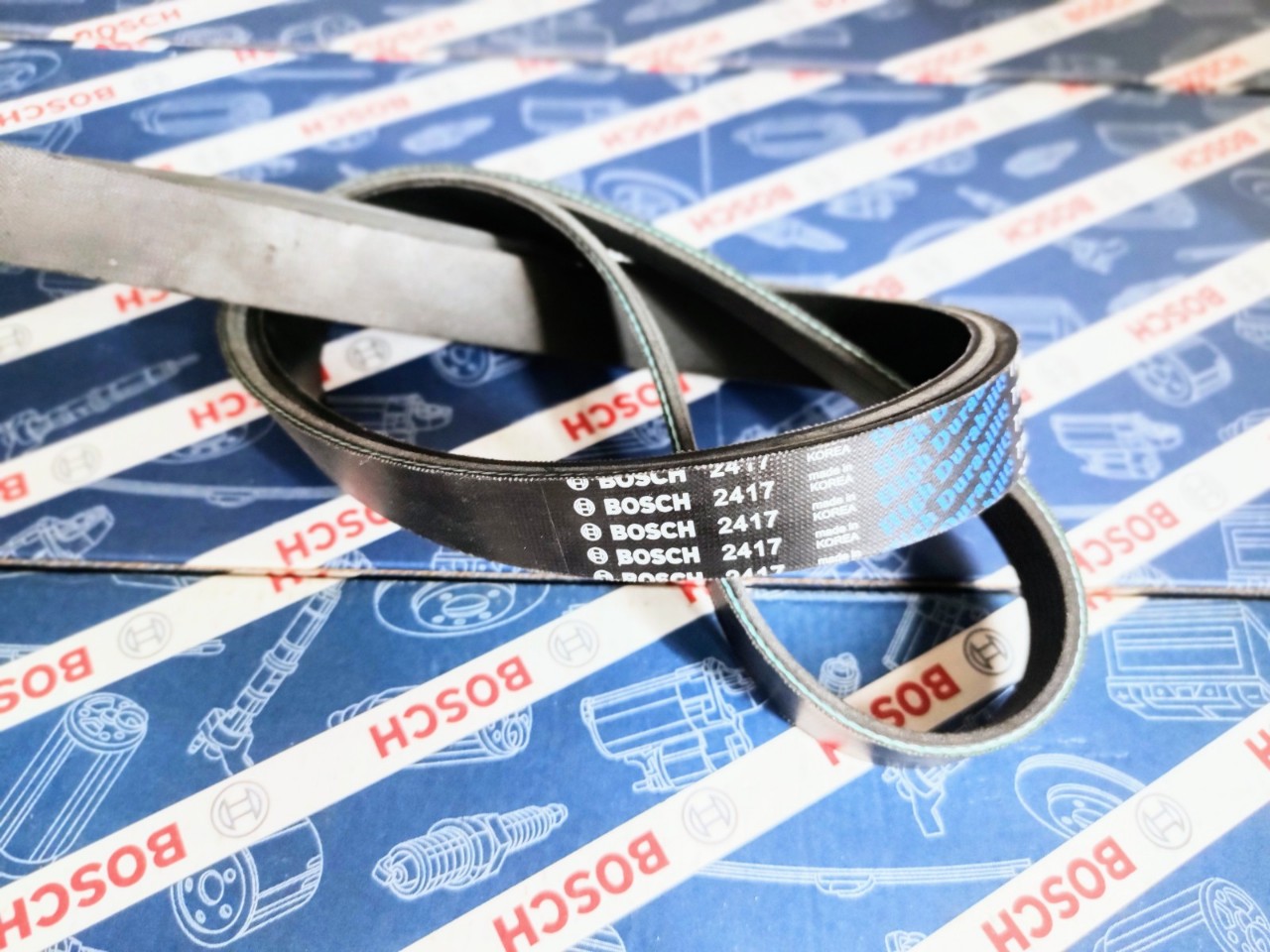 Mô tả sản phẩmDây Curoa Bosch kiểu rãnh chữ VĐặc tính:– Lớp vải sợi bọc ngoài với cấu trúc sợi chéo– Các dây chụi lực kéo bền, chắc và kéo căng– Cao su chụi nén do tăng cường phần tử dạng sợi– Vải sợi mặt đáy nhiều lớp– Răng đúcLợi ích:– Bền, chắc, chống mài mòn, không mất độ đàn hồi– Dây ít bị kéo giãn và cho công suất cao hơn– Hệ số ma sát lớn, chống mòn tuyệt vời, độ đàn hồi cao– Chống nức, độ dẻo dai cao, chụi dầu, chụi nhiệt– Thiết kế độc đáo, tuổi thọ uốn cong cao