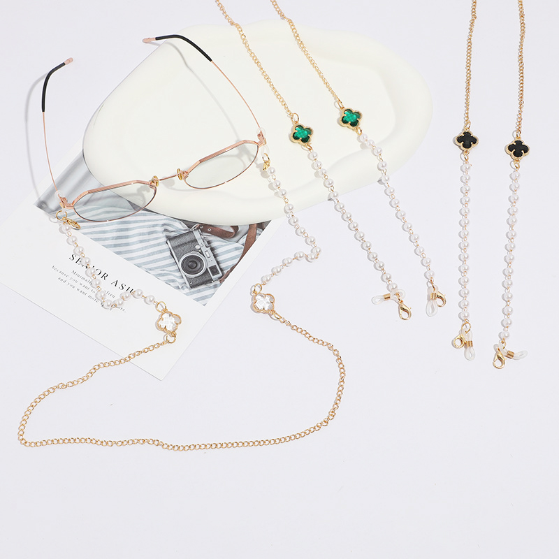 ✨Dây đeo kính cỏ bốn lá và ngọc trai độc đáo sáng tạo dây giữ khẩu trang đeo airpod dây đeo cổ