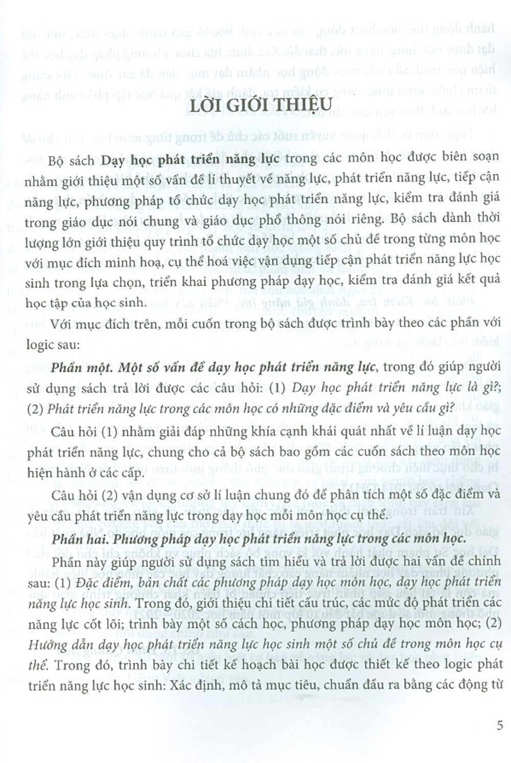 Trong phần Hướng dẫn dạy học một số chủ đề của từng môn học theo hướng phát triển năng lực học sinh, nội dung các chủ đề dựa vào chương trình và sách giáo khoa các môn học hiện hành nhưng phương pháp dạy học, kiểm tra, đánh giá và logic thiết kế, thực hiện bài học thể hiện cụ thể và tường minh hơn tiếp cận phát triển năng lực học sinh. Như vậy, bộ sách được biên soạn với mục đích chuẩn bị cho thực hiện chương trình giáo dục phổ thông mới theo tinh thần Nghị quyết Quốc hội số 88/2014/QH13.