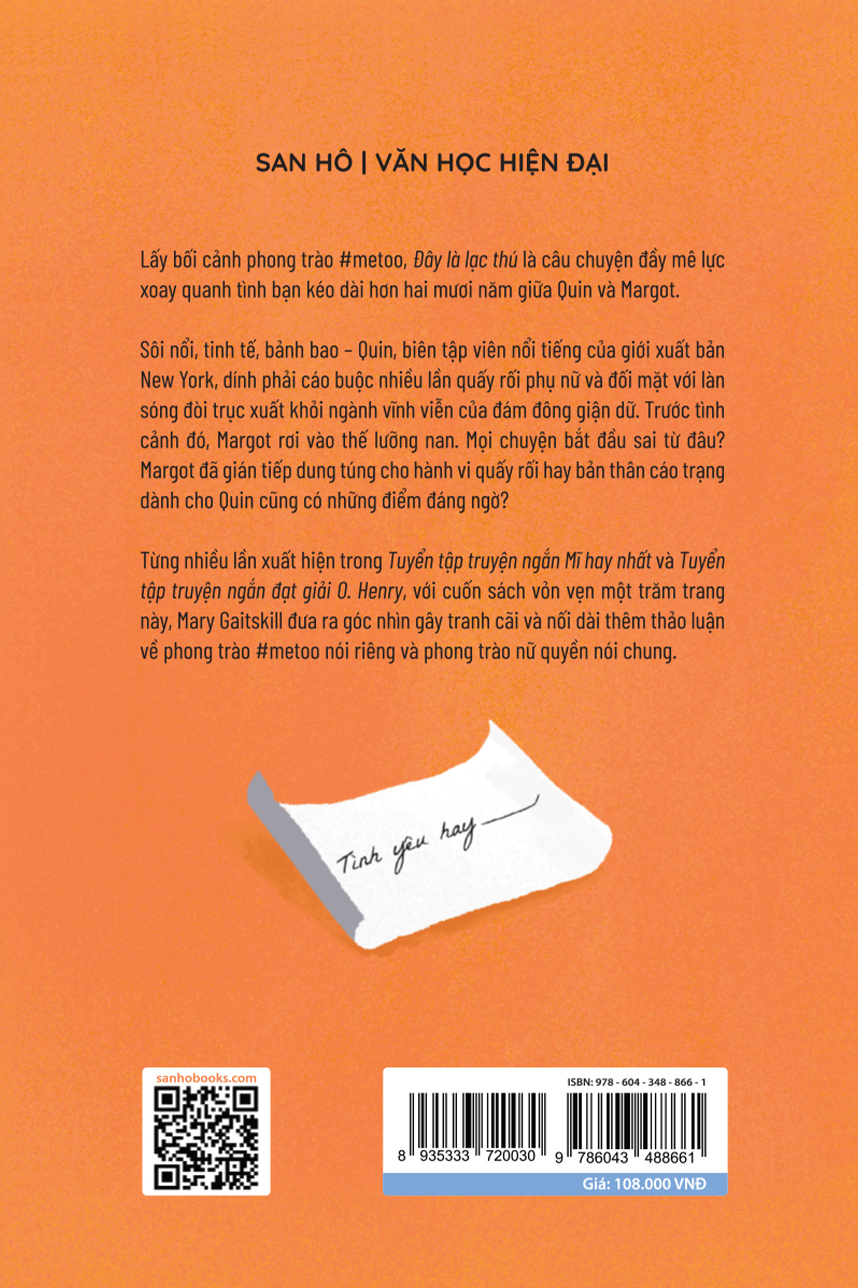 Từng nhiều lần xuất hiện trong Tuyển tập truyện ngắn Mĩ hay nhất và Tuyển tập truyện ngắn đạt giải O. Henry, với cuốn sách vỏn vẹn một trăm trang này, Mary Gaitskill đưa ra góc nhìn gây tranh cãi và nối dài thêm thảo luận về phong trào #metoo nói riêng và phong trào nữ quyền nói chung.