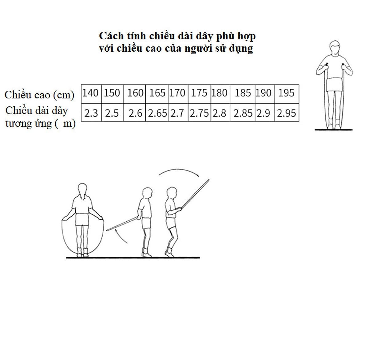 - Dây nhảy cao cấp với độ dầy và dài phù hợp với tất cả mọi độ cao của cơ thể