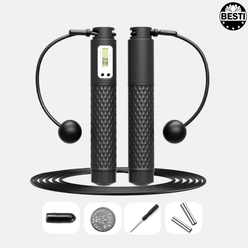 ✨Dây Nhảy Thể Thao Lõi Thép Cao Cấp Besti Tự Động Đếm Số, Tích Hợp Đo Calo, Quãng Đường, Độ Dài Dây Tùy Chỉnh - Kèm Bóng Xoay Và Tạ Điều Chỉnh Khối Lượng - Hàng Chính Hãng
