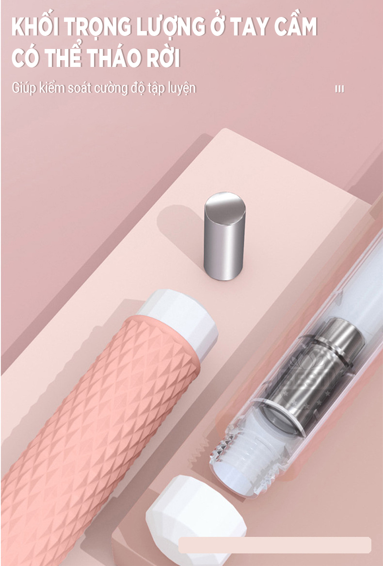 - Phần tạ sắt (có thể tháo rời) giúp người sử dụng dễ dàng kiểm soát cường độ tập luyện.