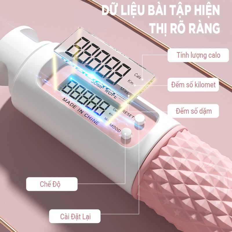 - Được thiết kế với bộ đếm calo và bộ đếm số vòng nhảy chính xác, dễ dàng thiết lập.