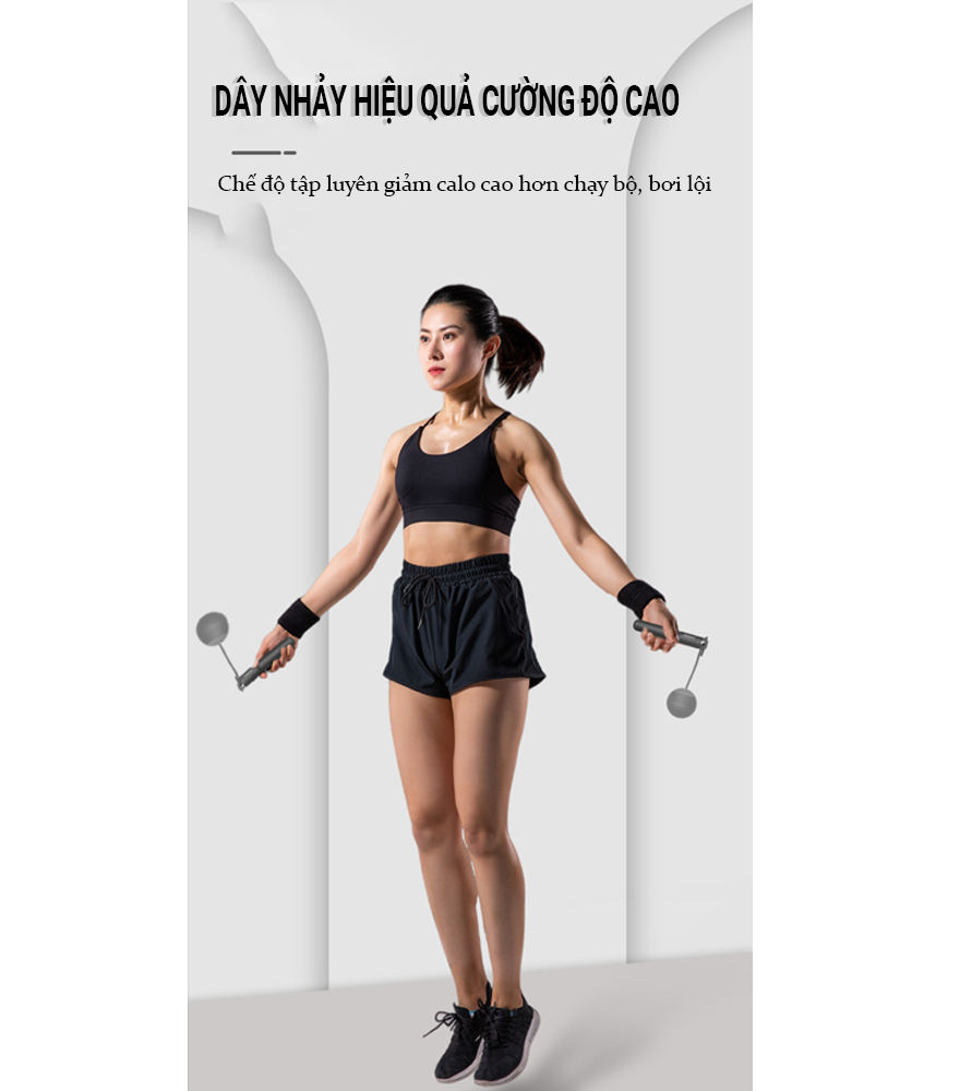 Mô Tả Sản Phầm: Dây nhảy không dây thể dục - Dây nhảy dây không dây đếm số giảm cân, dụng cụ thể thao đốt calo tại nhà hiệu quả Cải thiện khả