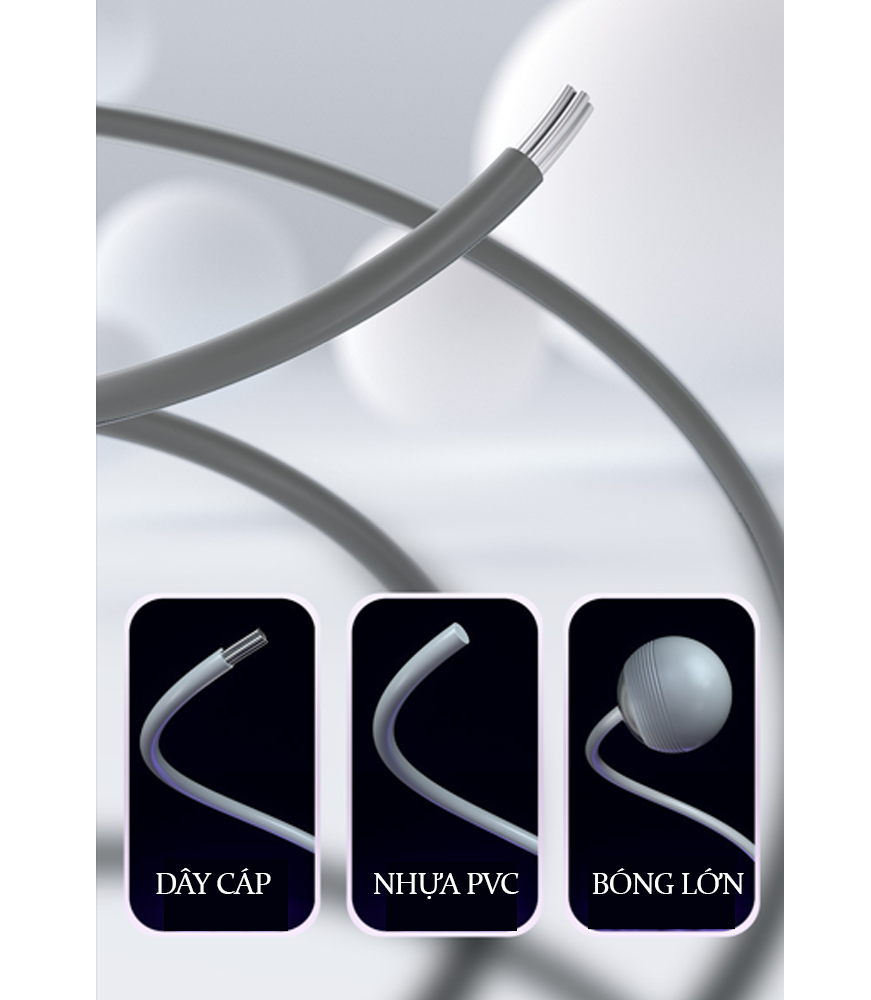 - Dây với lõi thép bện chắc chắn được bọc trong vật liệu PP dẻo chống mài mòn, đảm bảo tuổi thọ tối đa của dây nhảy và tránh đứt dây.