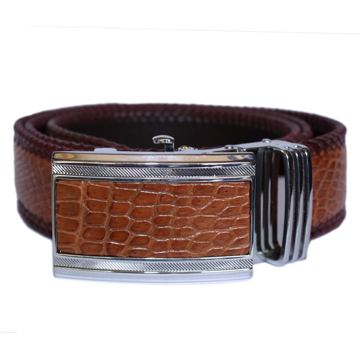 Dây nịt da cá sấu màu nâu đỏ da bụng