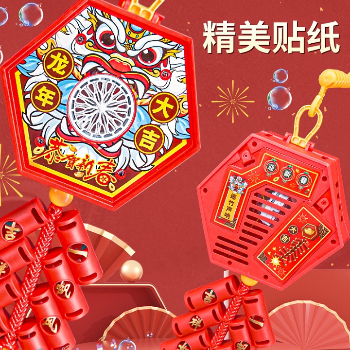 Đồ chơi ngày Tết - Dây Pha/o Thổi Bong Bóng Có Đèn Led Vui Nhộn Dùng Pin Trang trí theo chủ đề Tết với gam màu đỏ vàng sặc sỡ là biểu tượng cho sự