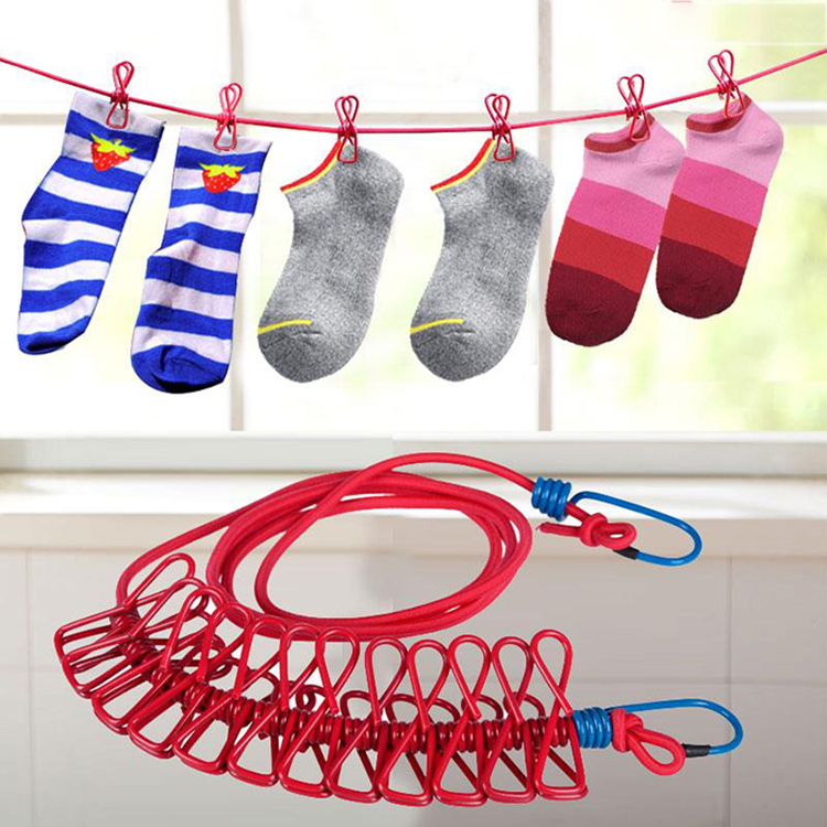 Dây phơi đồ kèm theo kẹp tiện dụng cho ạn giữ lại đồ dùng tránh trường hợp bi bay hay thất lạc.
