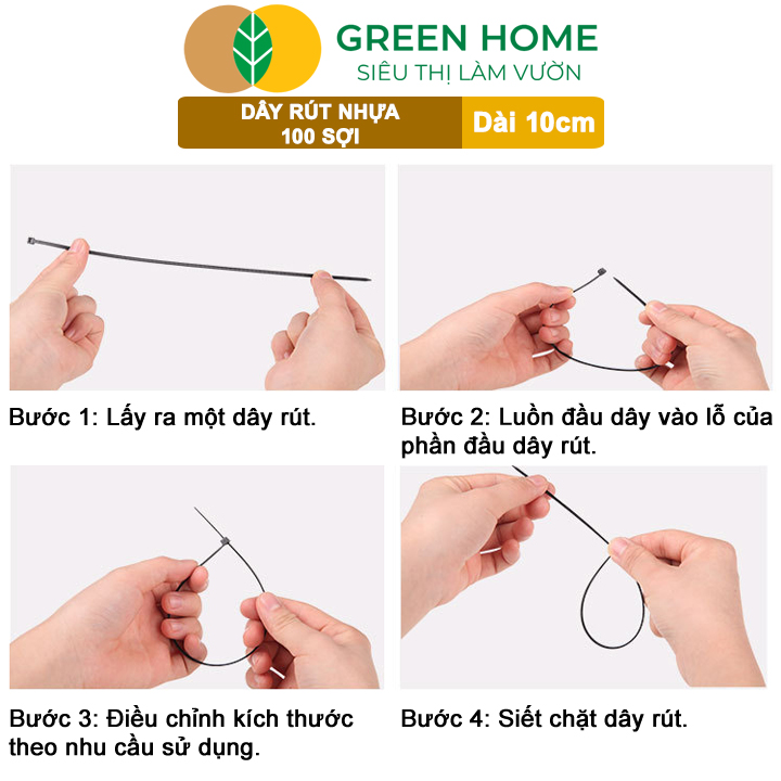Mua tại TiktokGIÁ SỈ SIÊU LỢI: Giá chỉ còn 6.900 Số lượng: 200 gói Giá chỉ còn 7.800 Số lượng: 100 gói ĐẶC ĐIỂM NỔI BẬT - Dây rút nhựa là một loại sợi được làm bằng chất liệu nhựa (PA Nylon 66) ưu điểm của nhựa polime này là dẻo dai, bền bỉ và chịu lực, chịu nhiệt khá tốt. - An toàn, không bị đứt, nút khoá chắc chắn, không bung, độ bền cao, … - Khác với những loại dây rút kim loại hoặc dây seal niêm phong, dây rút nhựa có thiết kế đơn giản hơn và chỉ sử dụng duy nhất một lần rồi cắt bỏ - Dây rút nhựa gồm một đầu khóa và một đoạn nhựa với nhiều mắc khóa trải dài từ đầu khóa xuống dưới chui cắm. Bộ phận lưỡi gà giúp gài chặt dây, ở một số loại dây rút, bộ phận này được thiết kế dài hơn để khi dùng tay lật lại có thể tháo ra được Dây rút nhựa là một loại sợi được làm bằng chất liệu nhựa (PA Nylon 66) ưu điểm của nhựa polime này là dẻo dai, bền bỉ và chịu lực, chịu nhiệt khá tốt. An toàn, không bị đứt, nút khoá chắc chắn, không bung, độ bền cao, … Khác với những loại dây rút kim loại hoặc dây seal niêm phong, dây rút nhựa có thiết kế đơn giản hơn và chỉ sử dụng duy nhất một lần rồi cắt bỏ MÔ TẢ SẢN PHẨM: - Dây rút nhựa 10cm, Túi từ 100 sợi - Chất liệu : Nhựa Nylon PA66 - Tính năng: Chống Axit, Chống ăn mòn, Cách nhiệt tốt, Mềm dẻo, đàn hồi tốt. - Sản phẩm dây rút nhựa với tính năng buộc dây điện, hàng hóa, đồ vật... - Trong cuộc sống hàng ngày, bạn có thể dùng Dây rút nhựa để đóng gói vật liệu, sửa cành cây, sửa hàng rào sân vườn. Trong văn phòng và nhà xưởng, bạn có thể sử dụng chúng để sắp xếp dây điện, treo đèn LED và băng rôn. Bạn thậm chí có thể thực hiện một số sáng tạo DIY: tạo hình Bướm hoặc Cá cho trẻ em; trình bày thiết kế thời trang của bạn một chiếc váy buộc dây. Dây rút nhựa gồm một đầu khóa và một đoạn nhựa với nhiều mắc khóa trải dài từ đầu khóa xuống dưới chui cắm. Bộ phận lưỡi gà giúp gài chặt dây, ở một số loại dây rút, bộ phận này được thiết kế dài hơn để khi dùng tay lật lại có thể tháo ra được Tính năng: Chống Axit, Chống ăn mòn, Cách nhiệt tốt, Mềm dẻo, đàn hồi tốt. Sản phẩm dây rút nhựa với tính năng buộc dây điện, hàng hóa, đồ vật... Dễ sử dụng: - Linh hoạt và dễ khóa. Bạn chỉ cần kéo nhẹ đuôi của Dây rút thì nó sẽ tự động khóa lại. Nó tiết kiệm thời gian của bạn - tự động khóa của nó đảm bảo bạn làm việc hiệu quả. - Dây rút giúp bạn không phải lo lắng - nó dừng lại ngay ở độ dài mong muốn của bạn và nó không bao giờ bị trượt. Hơn nữa, nó hiệu quả về chi phí - một gói 100 sợi tương đương với nhiều lần sử dụng. Linh hoạt và dễ khóa. Bạn chỉ cần kéo nhẹ đuôi của Dây rút thì nó sẽ tự động khóa lại. Nó tiết kiệm thời gian của bạn - tự động khóa của nó đảm bảo bạn làm việc hiệu quả. Dây rút giúp bạn không phải lo lắng - nó dừng lại ngay ở độ dài mong muốn của bạn và nó không bao giờ bị trượt. Hơn nữa, nó hiệu quả về chi phí - một gói 100 sợi tương đương với nhiều lần sử dụng. UY TÍN: - Sản phẩm y như hình ảnh - Dịch vụ nhanh, chất lượng sản phẩm luôn được quan tâm SIÊU THỊ LÀM VƯỜN GREENHOME Đầy Đủ Vật Tư - Giao Nhanh Hoả Tốc