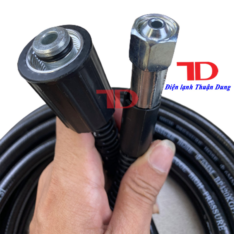- Bao đổi trả hoặc hoàn lại tiền 100% trong vòng 7 ngày sau khi nhận hàng nếu khách hàng không hài lòng về sản phẩm. Thông tin sản phẩm gồm: 1 dây xịt dài 8m, gồm 1 đầu to và 1 đầu nhỏ, dùng để thay dây cũ, hỏng hoặc không đủ độ dài đến vị trí cần. Hướng dẫn lắp đặt: Dùng dây ống còn lại (màu đen) gắn 1 đầu với súng xịt, đầu còn lại gắn vào thân máy (như hình).