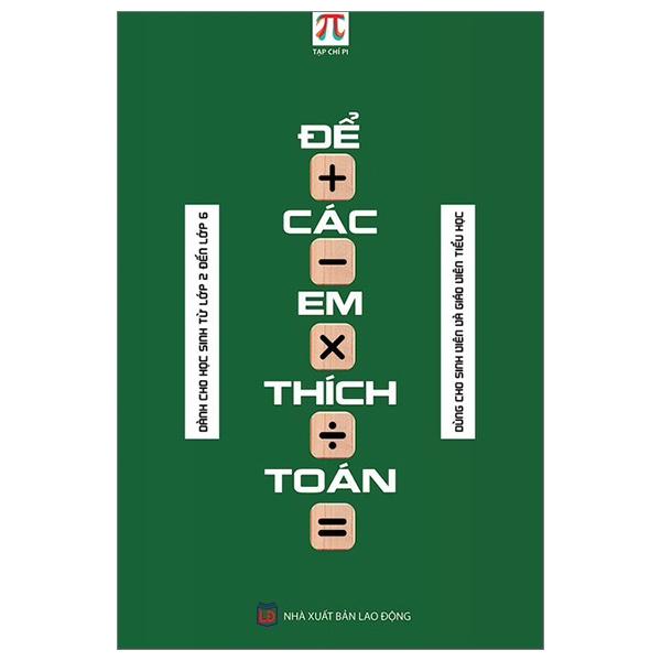 Cuốn tạp chí Pi trở thành người bạn đồng hành của rất nhiều người yêu Toán. Nhưng môn học nào cũng vậy, cần phải “bén rễ” từ khi là cây non. Đam mê học Toán phải được khơi nguồn từ khi các em là học sinh tiểu học. Vì thế cuốn sách: “Để các em thích toán” ra đời, ngoài mục đích khơi gợi tình yêu toán học với học sinh tiểu học, còn giúp các em nhận ra vẻ đẹp của Toán học qua những bài toán thú vị, các tiếp cận thú vị.