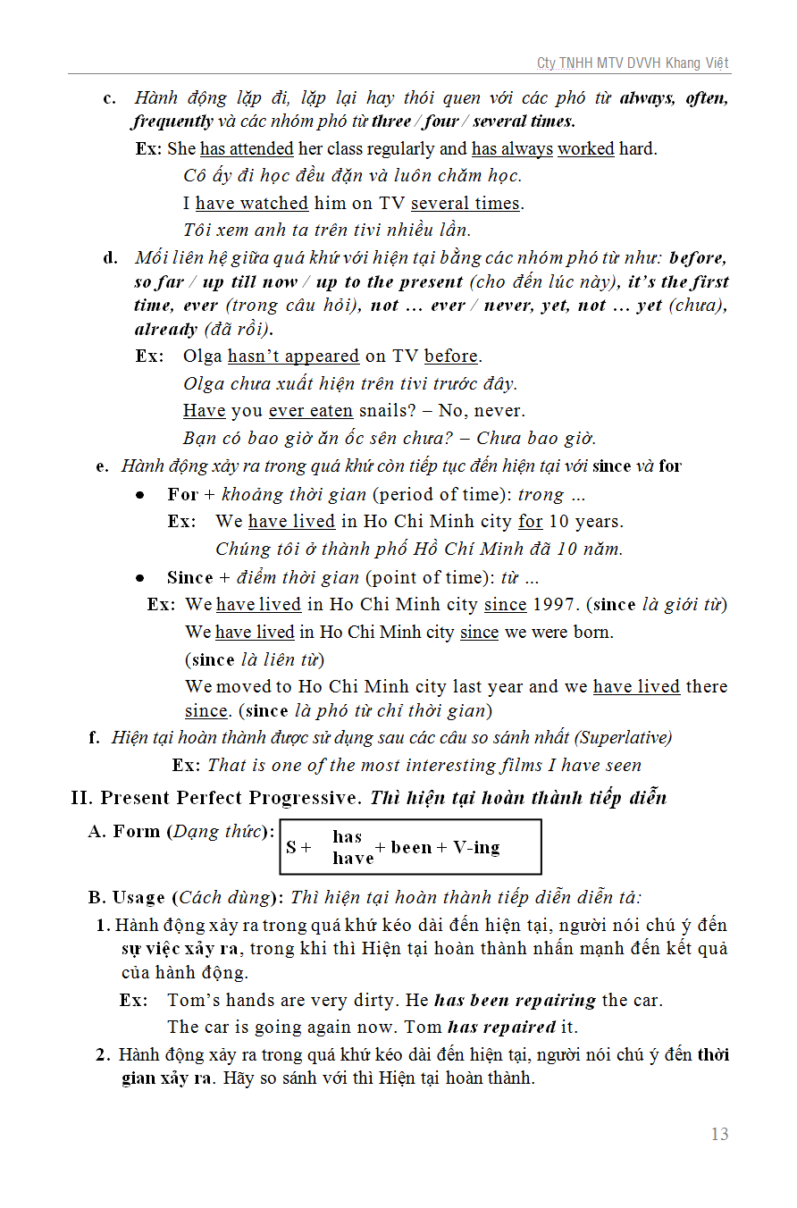 Chú giải các chủ điểm ngữ pháp sử dụng trong mỗi đơn vị bài học.