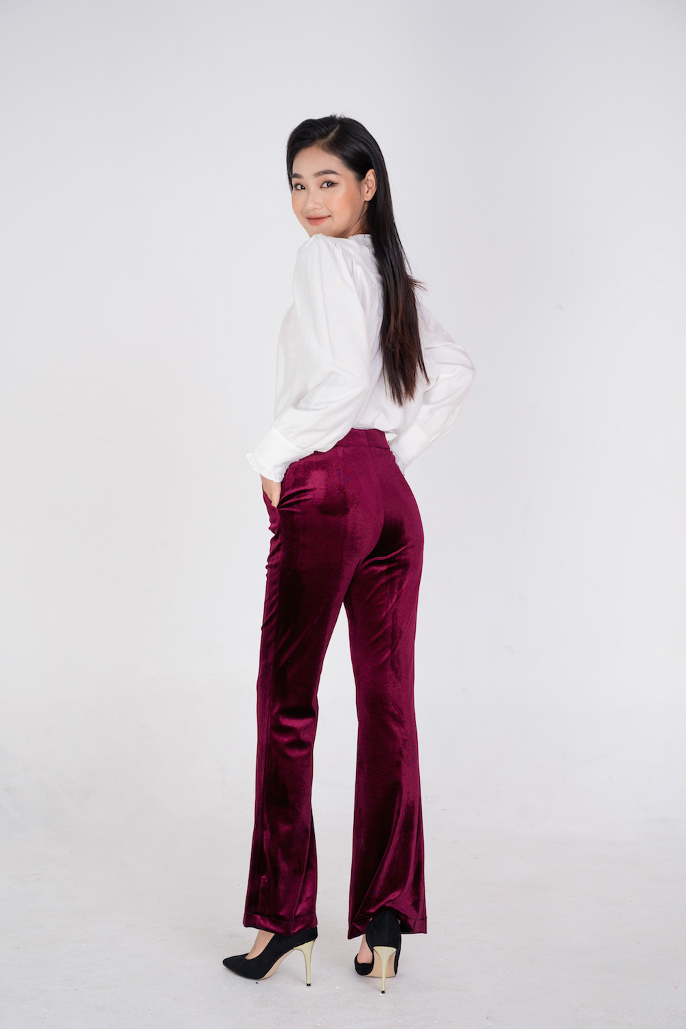 Áo dáng suông, với phần cổ cách điệu được nhún li ngực tạo phom suông rộng trẻ trung. Áo với điểm nhấn là hàng khuy trai 1 bên vài và tay bo kẹp bèo nhí