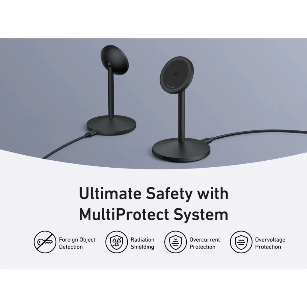 Sạc 15W tương thích với các thiết bị từ tính Trải nghiệm sạc nhanh với công suất đầu ra không dây 15W tương đương với hiệu suất của công nghệ từ tính. Sạc rảnh tay Chân đế tích hợp đảm bảo bạn có thể xem, làm việc hoặc chơi trong khi thiết bị đang sạc, hoàn toàn rảnh tay. Xoay 360° với bề mặt sạc có thể điều chỉnh Bộ sạc không dây có cơ chế xoay 360° được cấp bằng sáng chế để thay đổi hướng liền mạch và độ nghiêng có thể điều chỉnh để có góc nhìn hoàn hảo. Tai nghe không dây cũng có thể được sạc Tấm sạc có thể được điều chỉnh theo chiều ngang của bàn làm việc. Bạn cũng có thể sạc các thiết bị không có từ tính như tai nghe không dây.