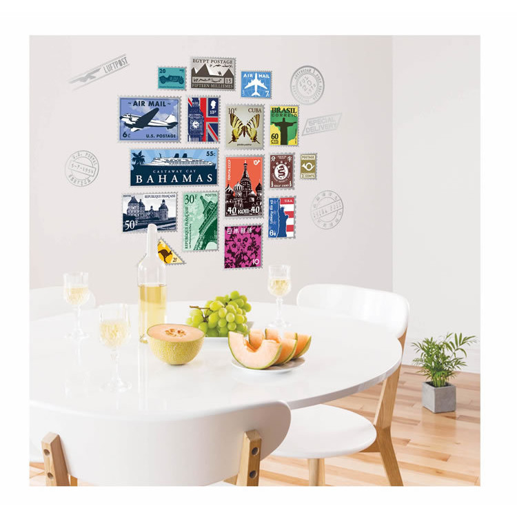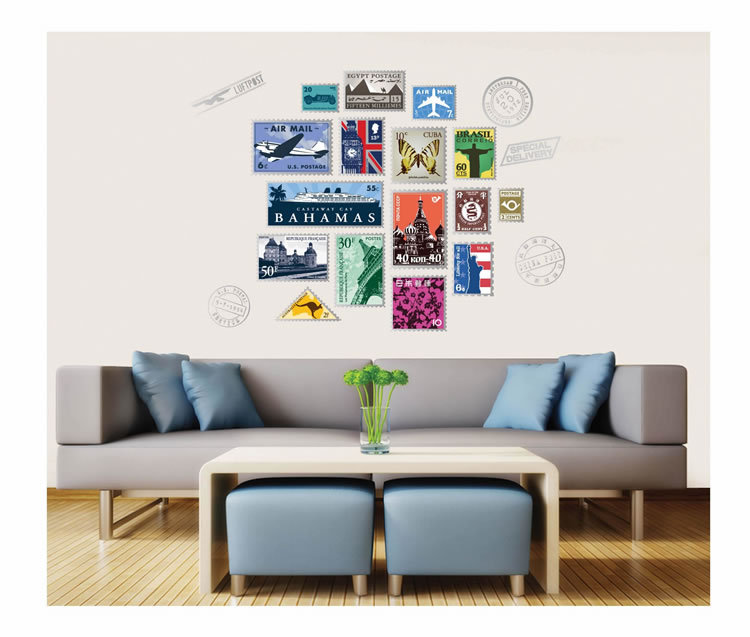 Decal dán tường Bộ sưu tập tem 3D với thiết kế độc đáo, sáng tạo, phong cách mà còn đầy ý nghĩa cho gia đình bạn