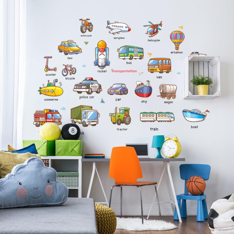 ✨Decal trang dán tường Tiếng anh các loại phương tiện giao thông HM92024