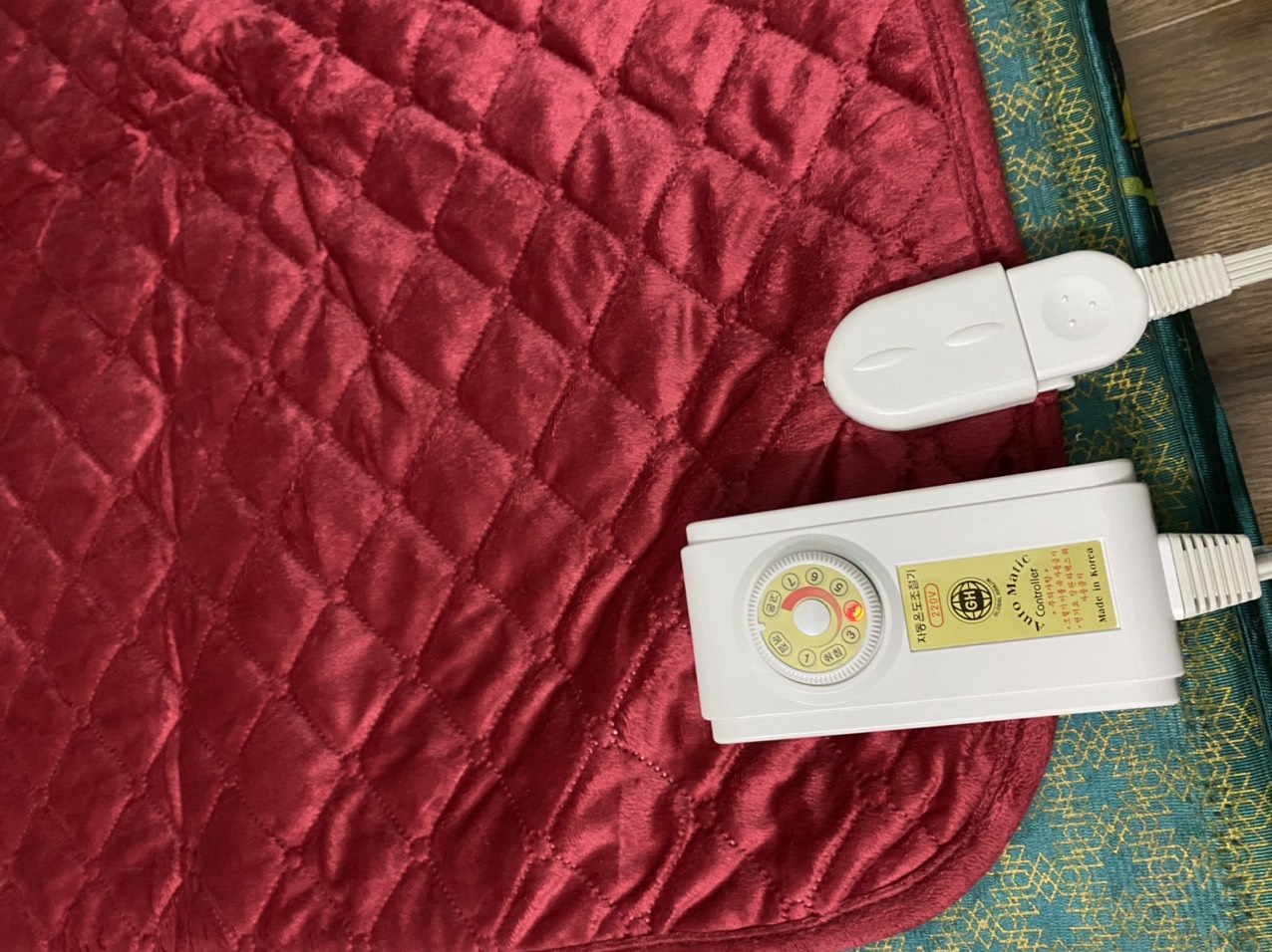 - Chất liệu nhung nỉ , màu đỏ đô. đệm sưởi Hàn Quốc giúp đảm bảo độ ấm tuyệt vời cho cơ thể vào những đêm đông giá rét; giúp loại bỏ ẩm thấp nơi giường nằm, đảm bảo cho giường nệm luôn khô ráo và ấm áp. Chăn điện rất tốt cho sức khỏe người dùng, tốt hơn khi dùng cho người già và những người bị chứng đau lưng mỏi cơ, thấp khớp Khuyến cáo khi sử dụng đệm điện Hàn Quốc: Khi khởi động cắm chặt đầu giắc vào chăn, chỉnh điều khiển về số 4 hoặc 5 tầm 7 đến 10 phút là nóng đều, thì điều chỉnh số về 1 SỐ 2 theo thời tiết. - Khi gấp chăn không nên để bộ điều khiển nhiệt ra ngoài mà nên để trong lòng chăn để đảm bảo tuổi thọ cho bộ điều khiển.