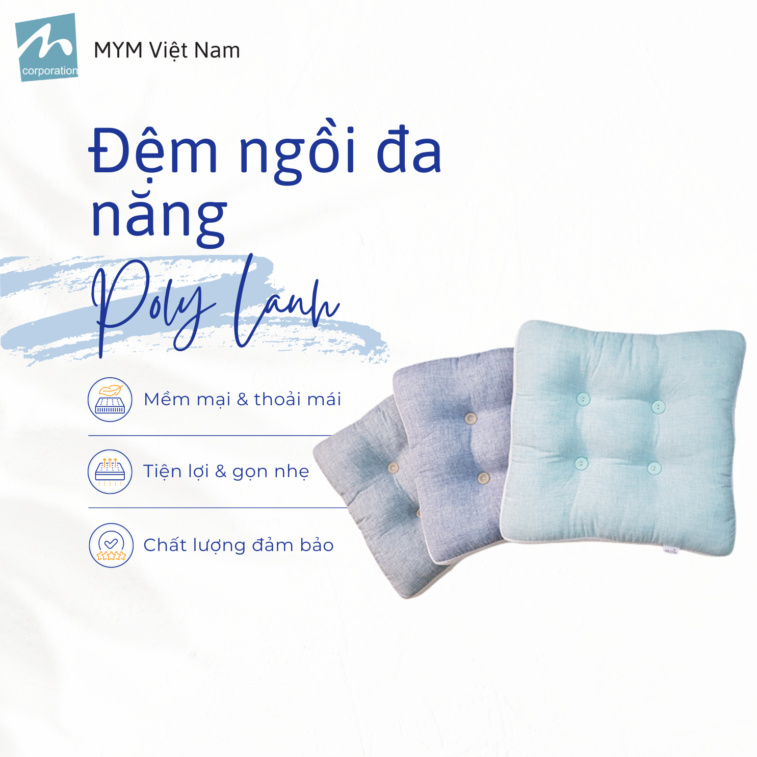 - Công dụng : ngồi thiền, yoga. Màu sắc đa dạng, được may và giật nút thủ công tỉ mỉ có thể dùng để trang trí phối hợp với các loại ghế sofa tạo cảm