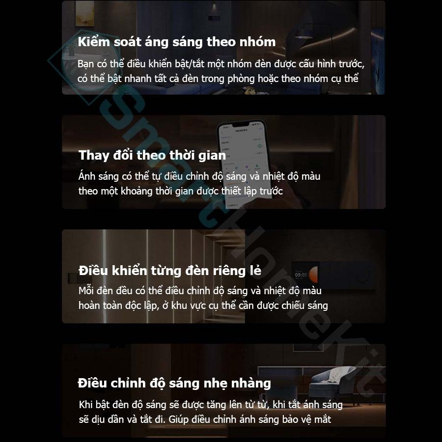 - Điều khiển hệ thống chiếu sáng chỉ với vài thao tác trên điện thoại