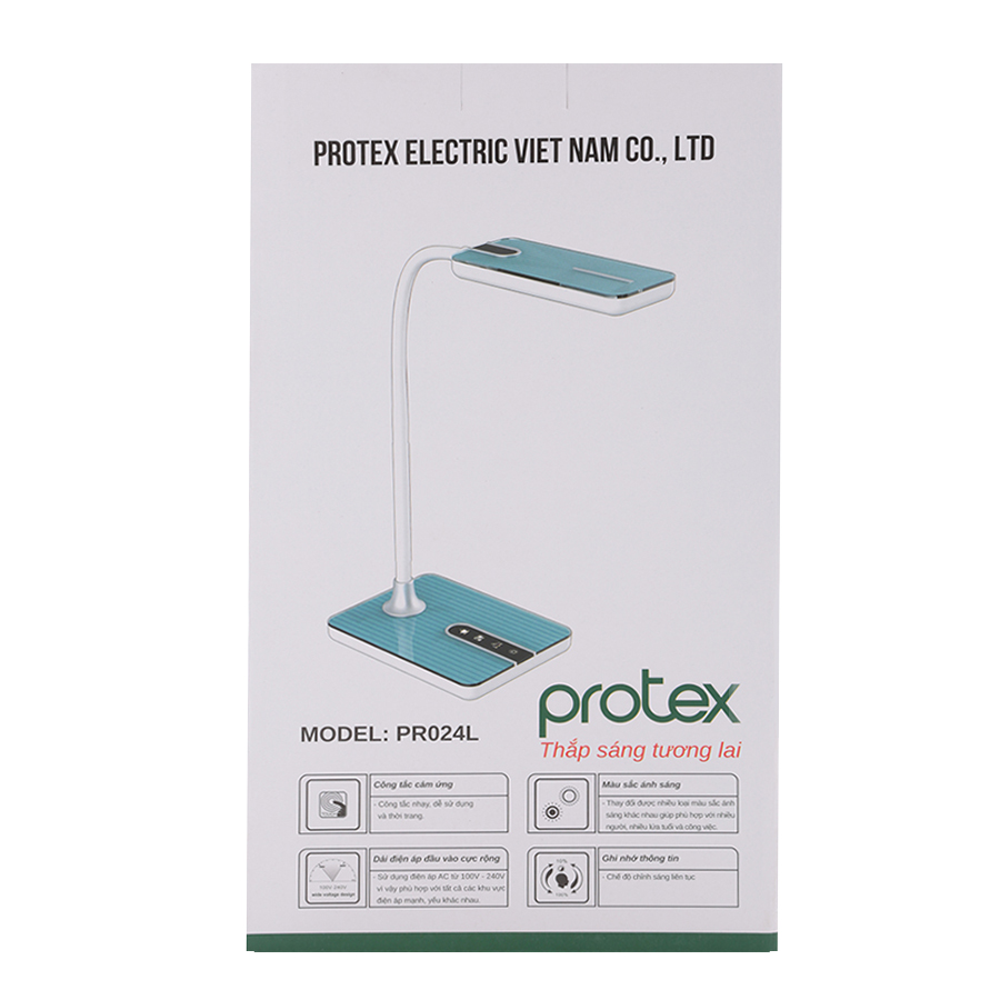 Đèn Bàn Chống Cận Thị Protex Model PR024L - Hàng Chính Hãng sử dụng LED: 8W, chip LED công nghệ CHLB Đức cho đèn chất lượng ánh sáng tự nhiên. Công tắc: Cảm ứng Có